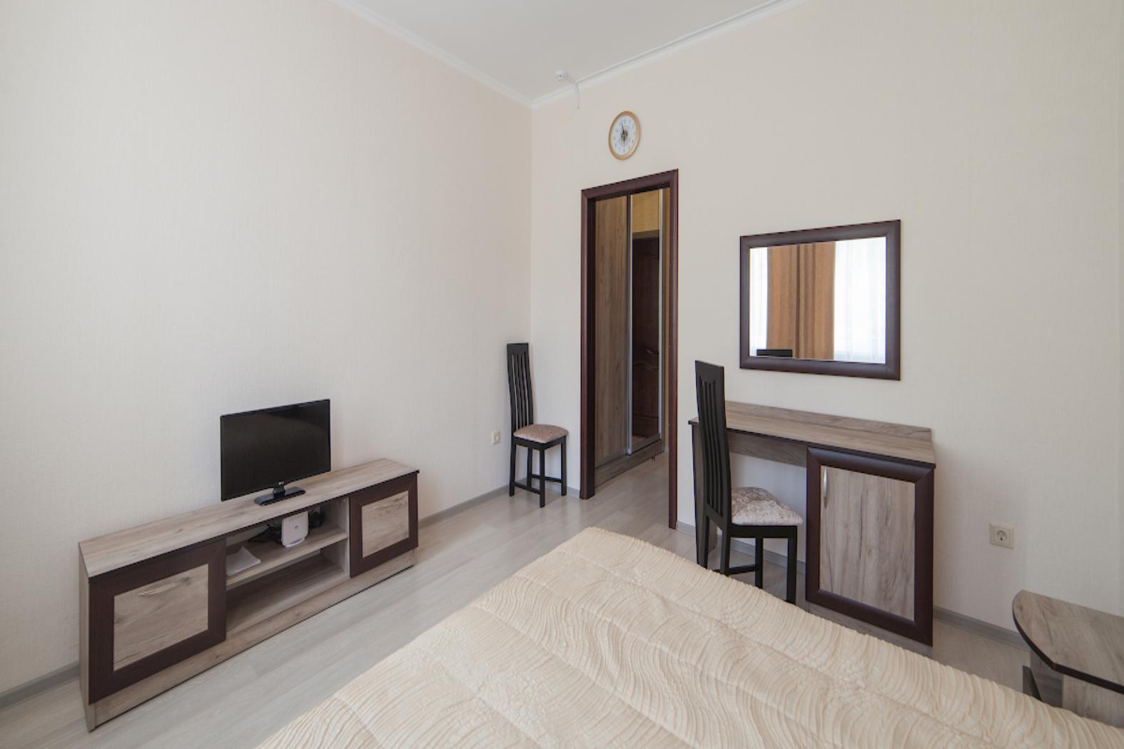 1 осн. место. 2 доп. места. Мебель: вешалка, зеркало, кровать двуспальная, прикроватные тумбочки, стол, стулья, шкаф. Оборудование: гладильная доска, кондиционер, телевизор, утюг, холодильник, электрочайник. Санузел: с душем, тапочки, туалетные принадлежности, фен, халат. Сервис: Wi-Fi бесплатно, смена полотенец, смена постельного белья, уборка номера.