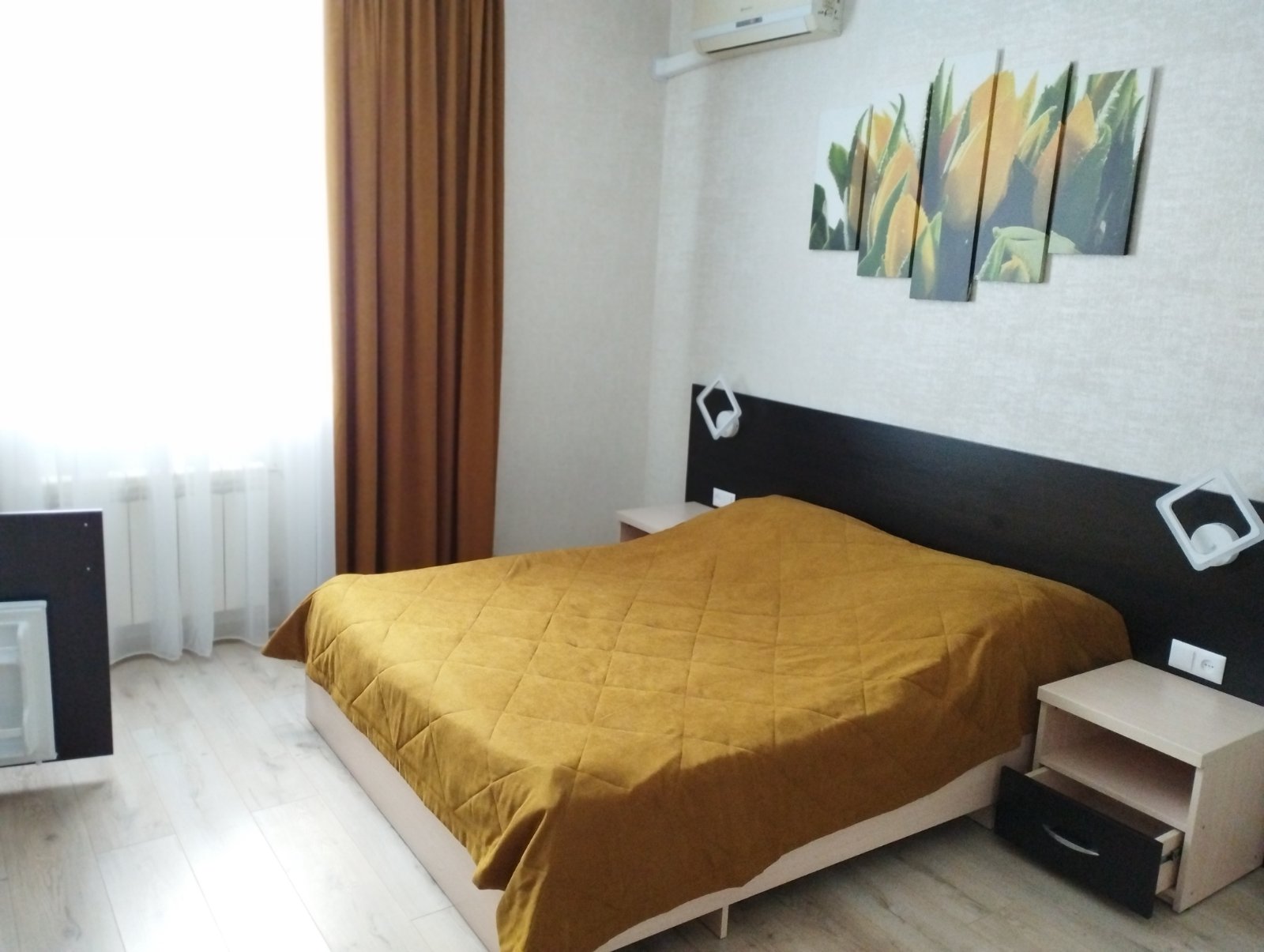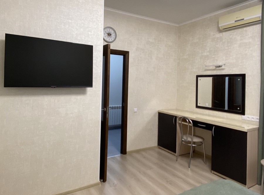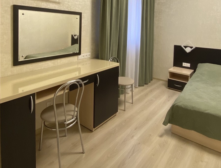1 осн. место. 2 доп. места. Мебель: вешалка, зеркало, кровати односпальные /одна двуспальная кровать, прикроватные тумбочки, стол, стулья, шкаф. Оборудование: гладильная доска, кондиционер, телевизор, утюг, холодильник, электрочайник. Санузел: с душем, туалетные принадлежности, фен. Сервис: Wi-Fi бесплатно, смена полотенец, смена постельного белья, уборка номера.